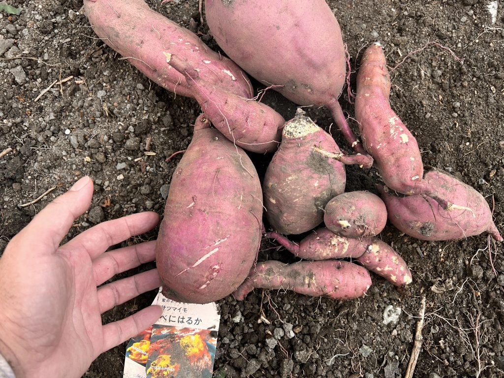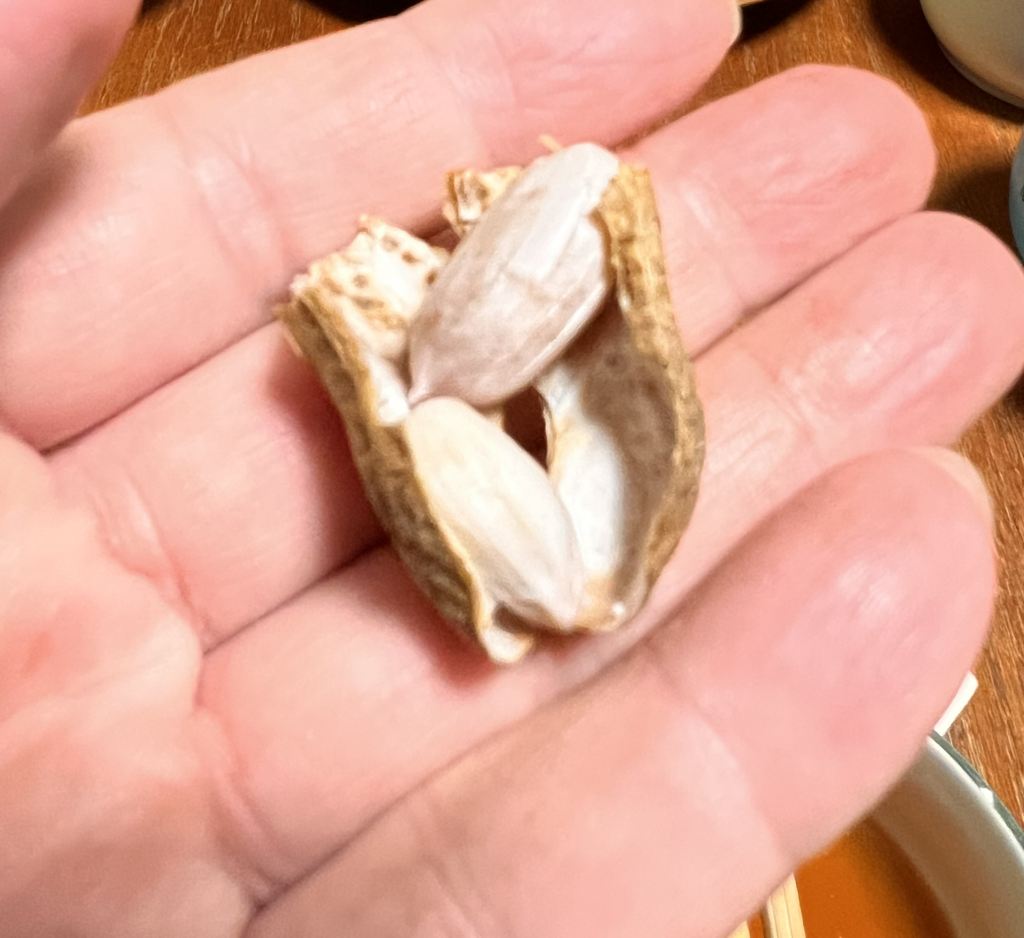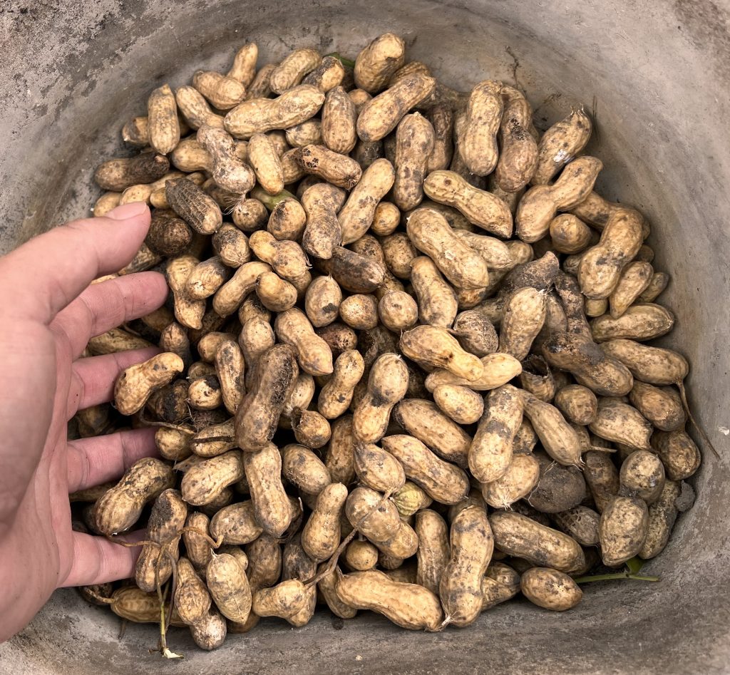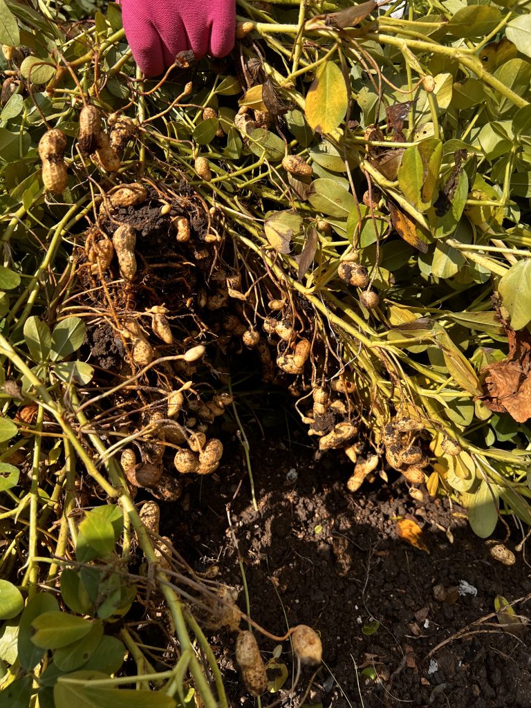 2025年10月11日 / 最終更新日時 : 2025年11月23日 mezchan 農園だより 落花生の収穫 落花生を収穫しました。花が咲いたあと、そこから子房柄(しぼうへい)というものが伸びて土に潜り、その先が膨らんで実ができます。本当に面白いですね! 鮮度のよいうちに洗って塩ゆでにします! サツマイモ、そしてサツマイモののツルも収穫しました! サツマイモののツルは洗って切り、ゆでたあとにニンジンと一緒に炒めてきんぴらにしていただきました!