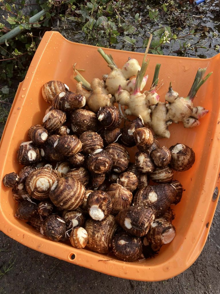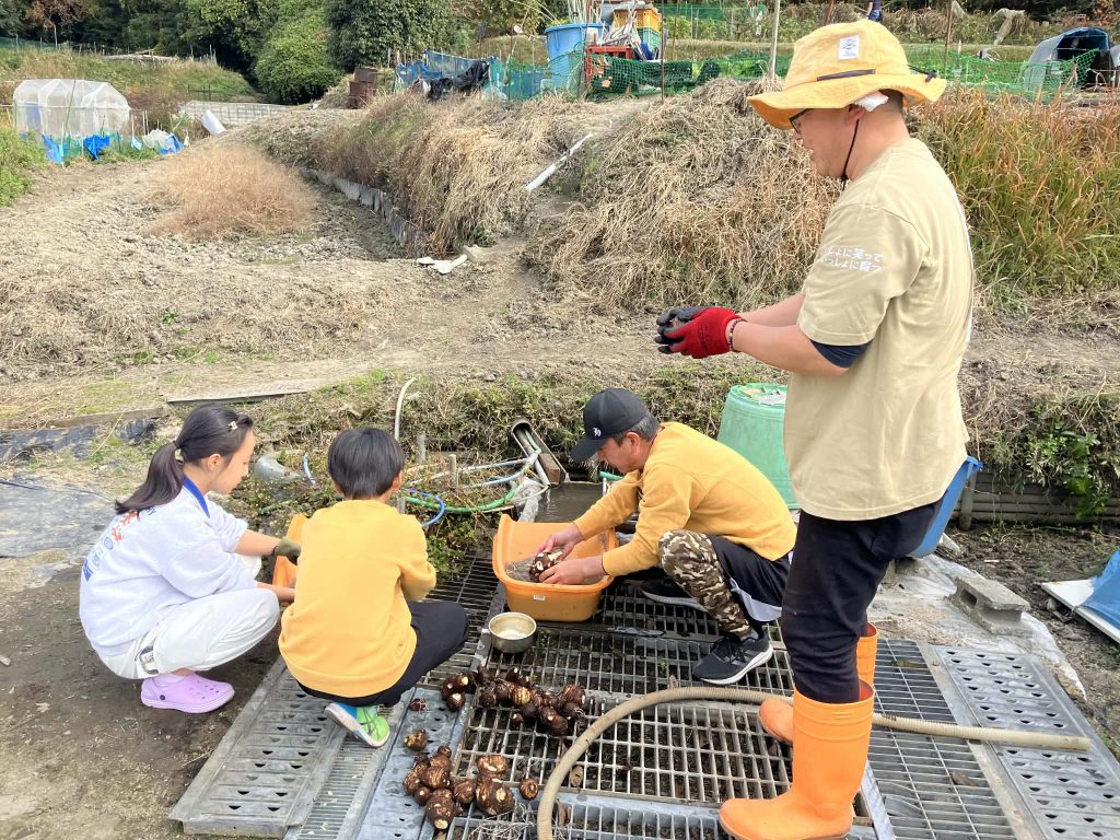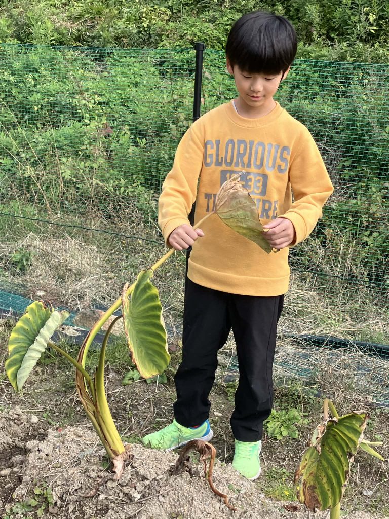 里芋を収穫するのは初めてみたいで、「こんな風になってるんだー」というのを思いながら親芋のまわりについている子芋をぽろぽろと外していきます。