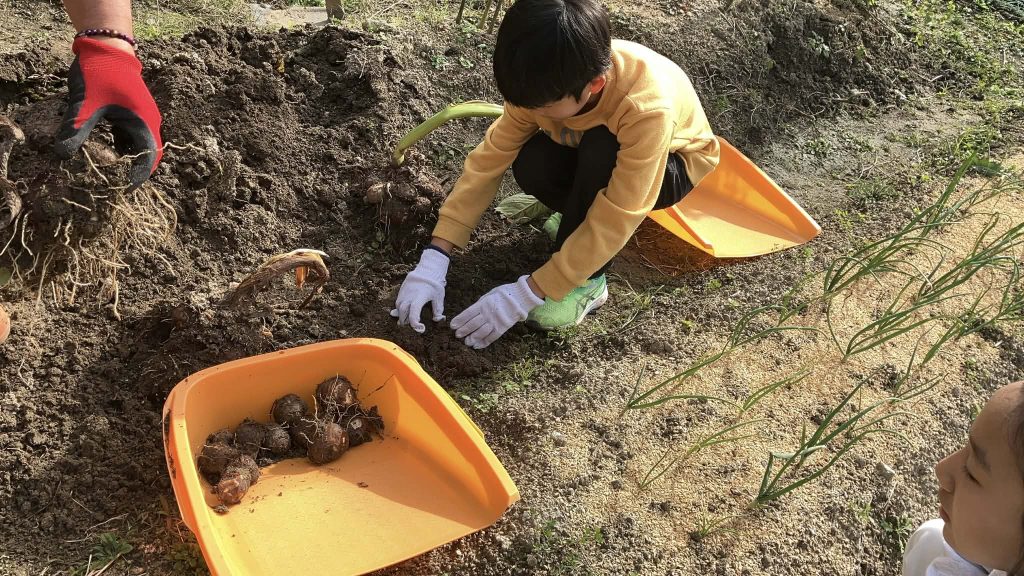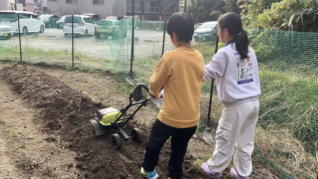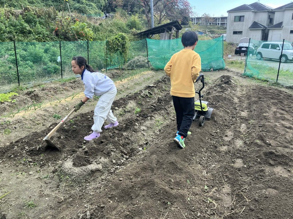 いっぱい食べたあとはみんなで畑を耕すお手伝い!