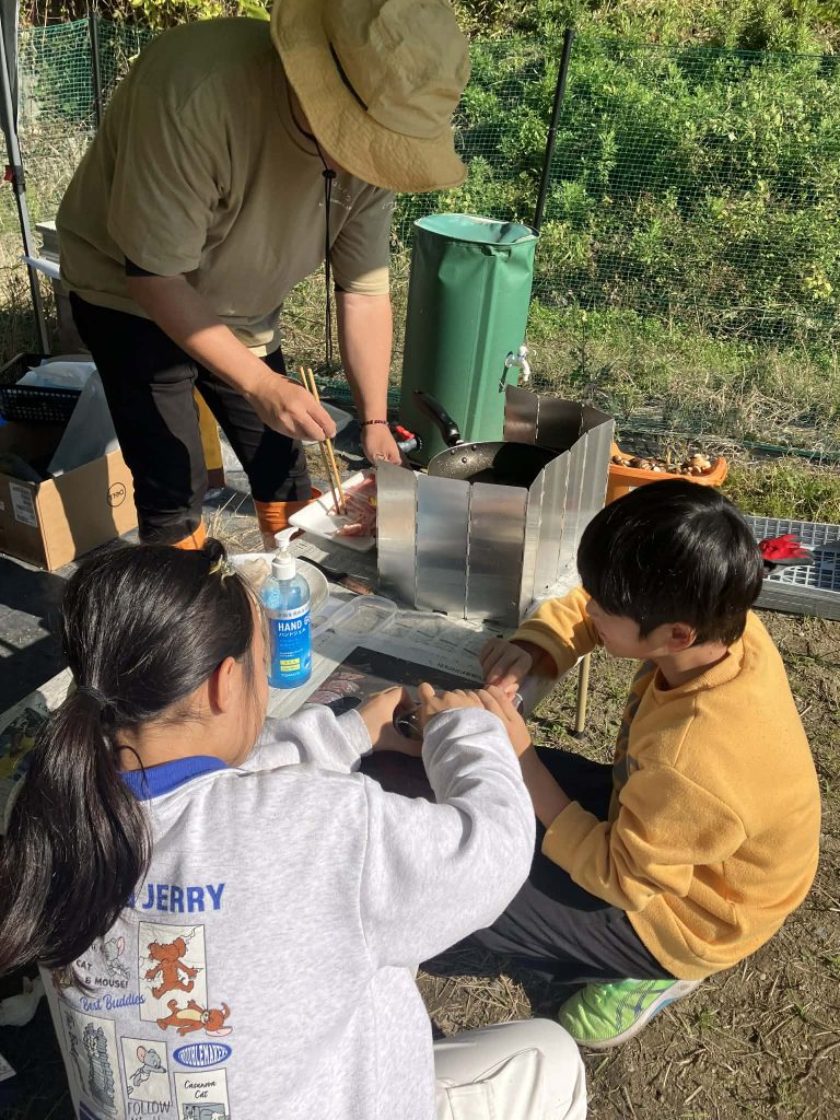あっという間に平らげて、今度は子どもたちに里芋の皮も剥いてもらって、里芋焼き!