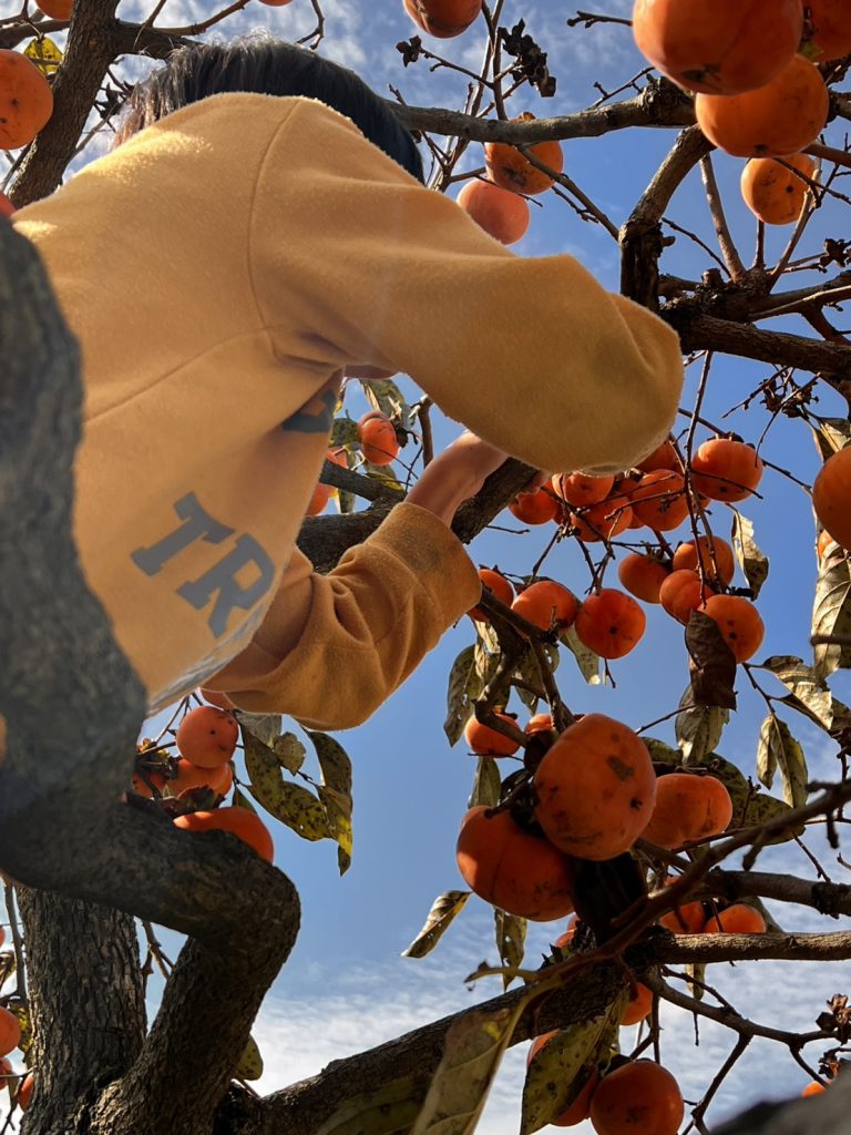 手を伸ばしたり、少し木に登ったりしながらみんなで収穫!